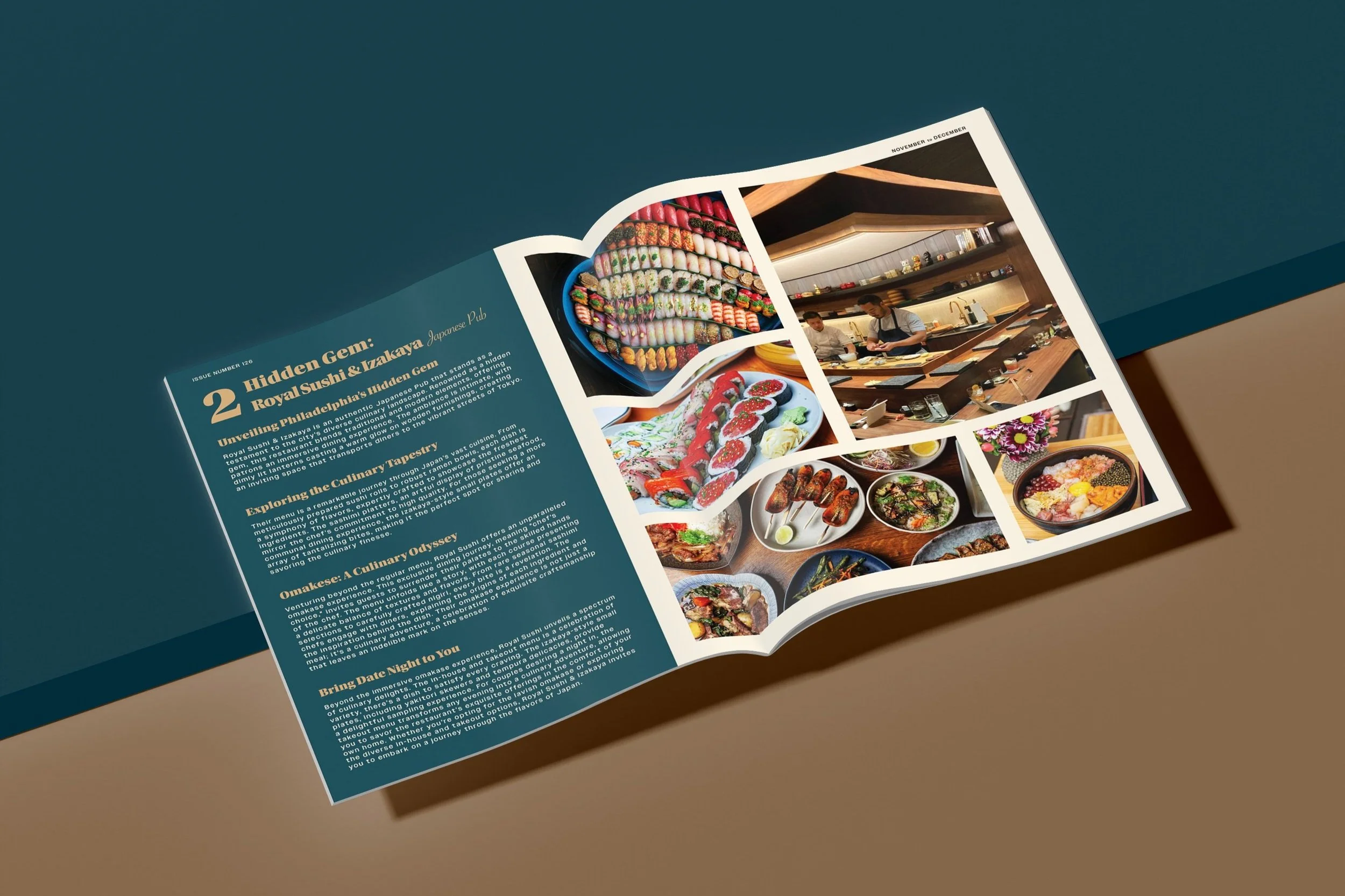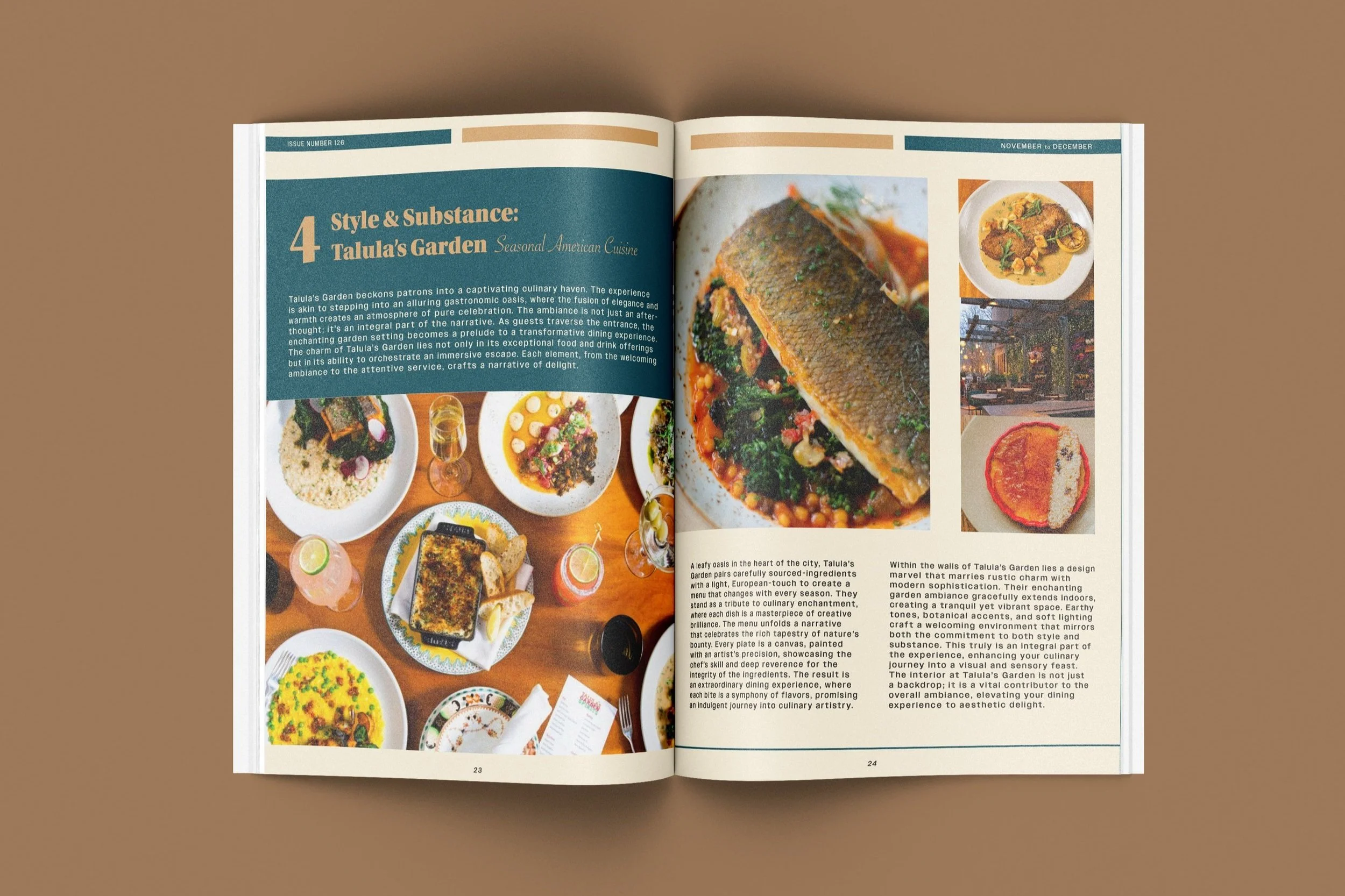 Once the content was curated, I brought the magazine to life in InDesign by creating a refined, visually engaging layout that reflected the elegance of the featured restaurants. Clean, modern typography and high-quality imagery—sourced from restaurant websites and social media—worked together to create a polished, cohesive aesthetic. Using Photoshop, I enhanced the photos for consistency and visual impact, ensuring each page felt immersive and intentional. This project was a blend of editorial design and culinary storytelling, allowing me to combine my love for fine dining with my passion for creating elevated, experience-driven layouts.